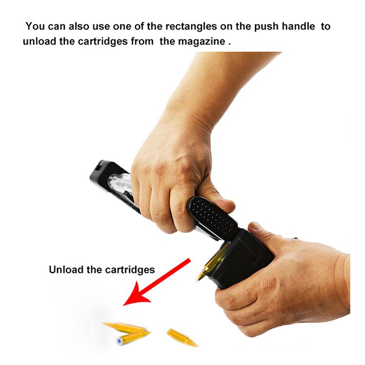 ● Напуните кертриџе пуним у жлеб, поставите магацину на исти као АР механички принцип. притисните потисник, патроне ће лако ући у магацин.