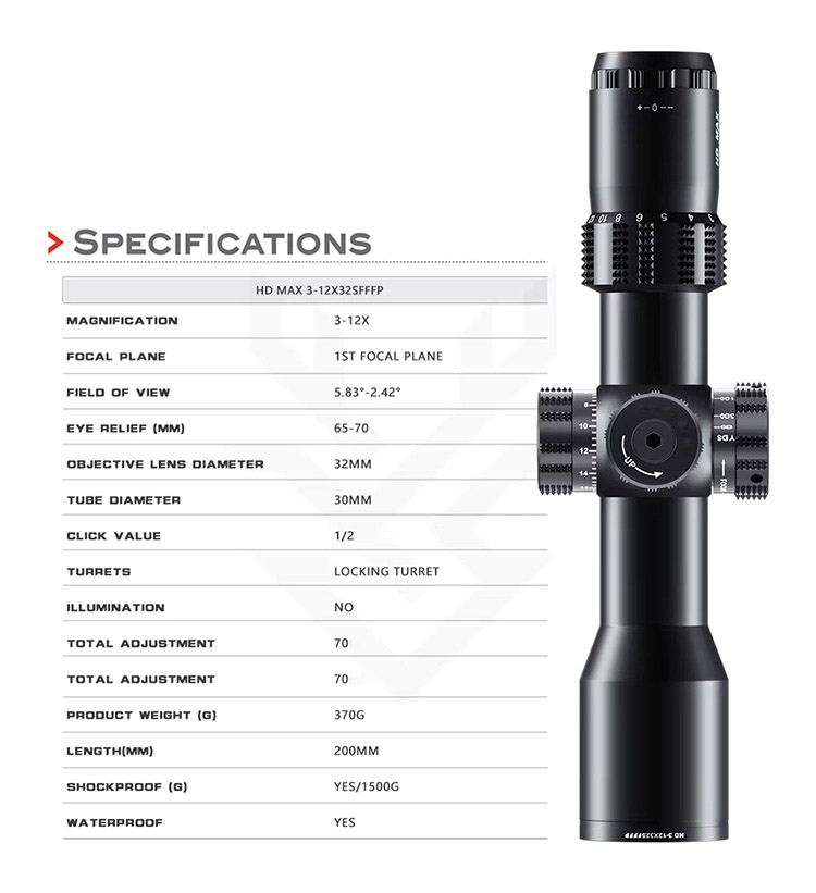 МАКС 3-12Кс32СФ ФФП ХД ловачки монокуларни телескоп са високим сочивом на велико