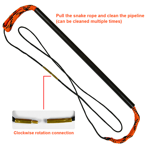 Комплет за чишћење пиштоља за лов на змију [Уграђена четка] Месингане четке су уграђене у уже за чишћење како би се појачале перформансе чишћења. [Супер чишћење] Конопац од синтетичке тканине са четком може брзо и темељно очистити отвор. [Тесно зашивени] Конопци за чишћење пиштоља су чврсто зашивени, неће се лако покидати; [Могу се прати за поновну употребу] Конопци се могу прати за поновну употребу.