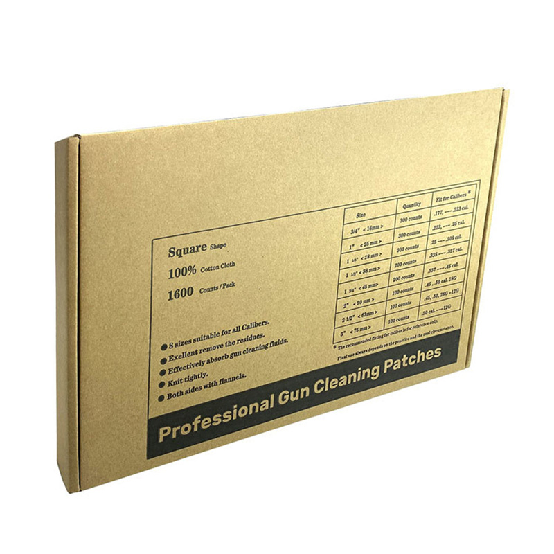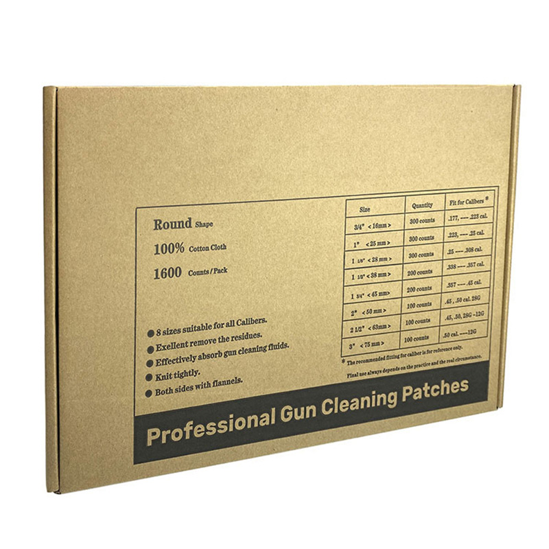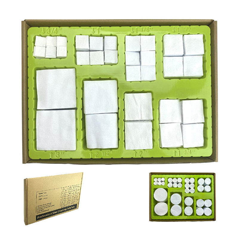 Универзална бела памучна тканина квадратни фластери за чишћење пиштоља блистер кутија 8 величина, 1600 комада ● 【Све у једном комбинованом паковању】 Закрпе за чишћење од 8 величина могу да одговарају за ватрено оружје свих калибара од .177цал. то Схотгун 12Г; Уштедите свој новац и време за куповину различитих величина за ватрено оружје различитог калибра; ● 【Памучни материјал високе упијања】 100% памучни материјал са високом апсорпцијом. Брзо упија остатке течности, уклања остатке и рђу са површине проврта. ● 【Фланнел тканина】Површина фланел тканине у великој мери појачава чист учинак. ● 【Свака величина у послужавнику】 Пакујемо 8 величина по 8 тацни. И свако лежиште са својом величином одштампано поред лежишта. Лако је пронаћи и узети одговарајућу величину из паковања. ● 【ОЕМ】 Лого клијента је прихватљив.